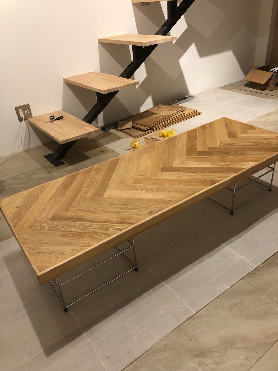 こちらは本当想像の3倍難しかったヘリーンボーンローテーブル。原材料費が上がって失敗もできない思い入れの深いローテーブルになりました、